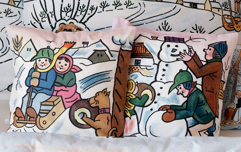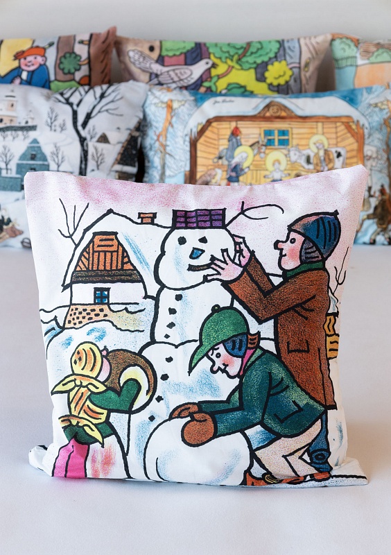 Dekoračná obliečka na vankúš Josef Lada Snehuliak