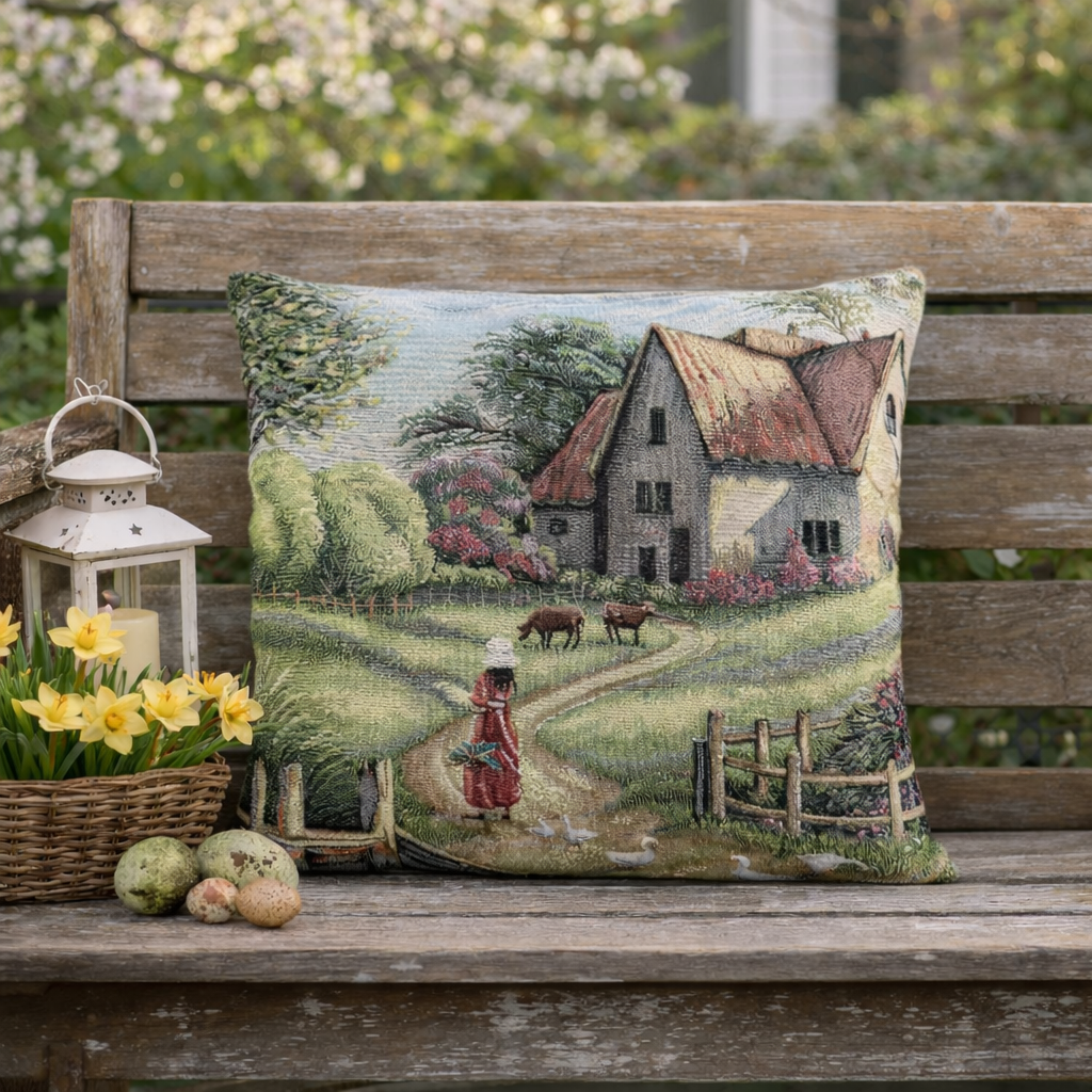 Jarná gobelínová obliečka na vankúš 6230 húsky