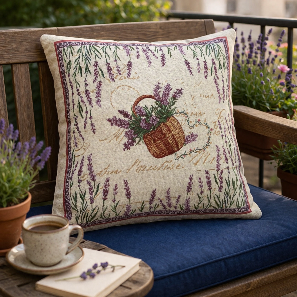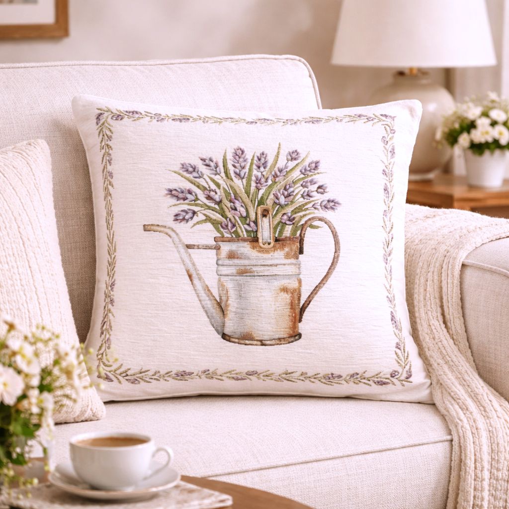 Gobelínová obliečka na vankúš CHENILLE 1222 B levanduľa v krčahu