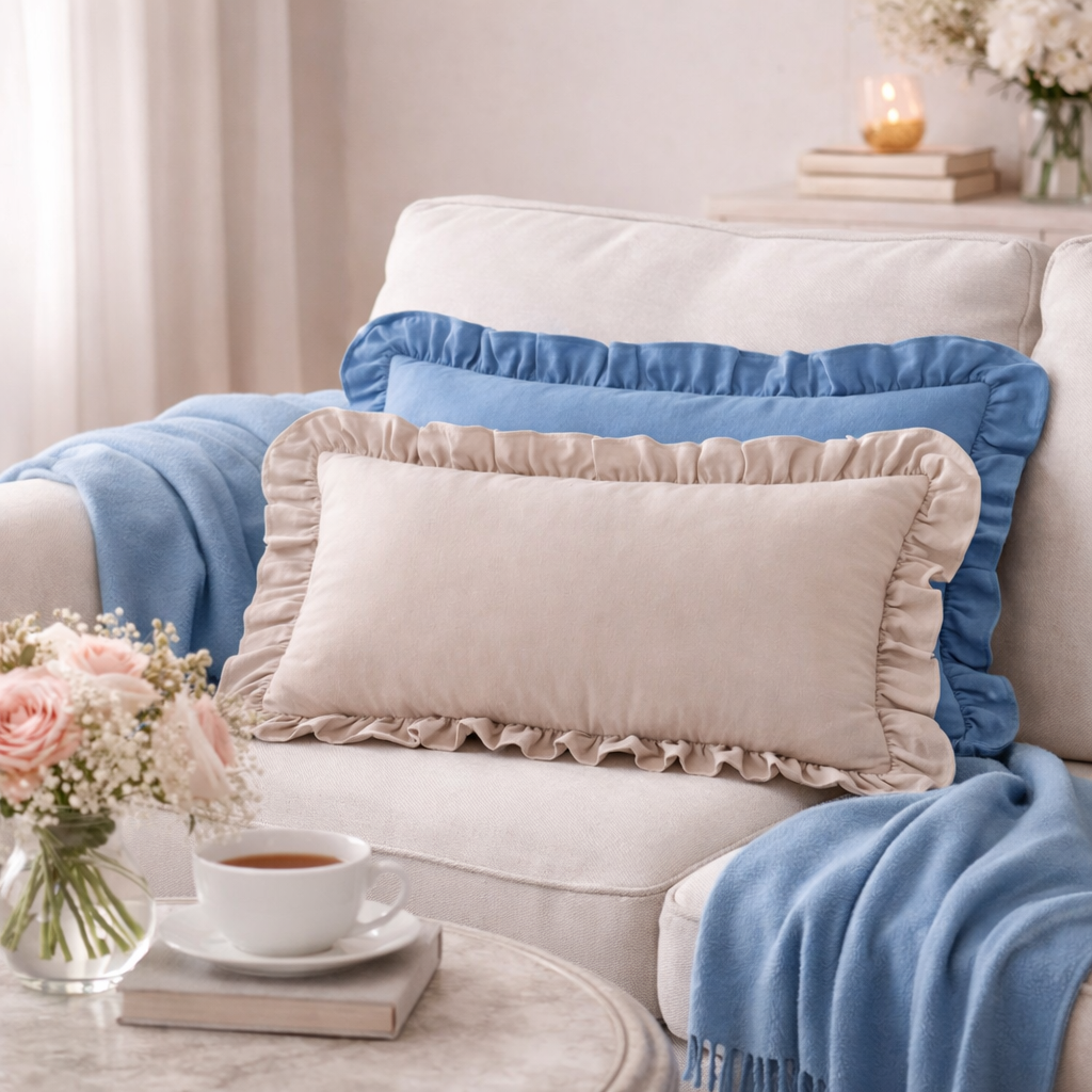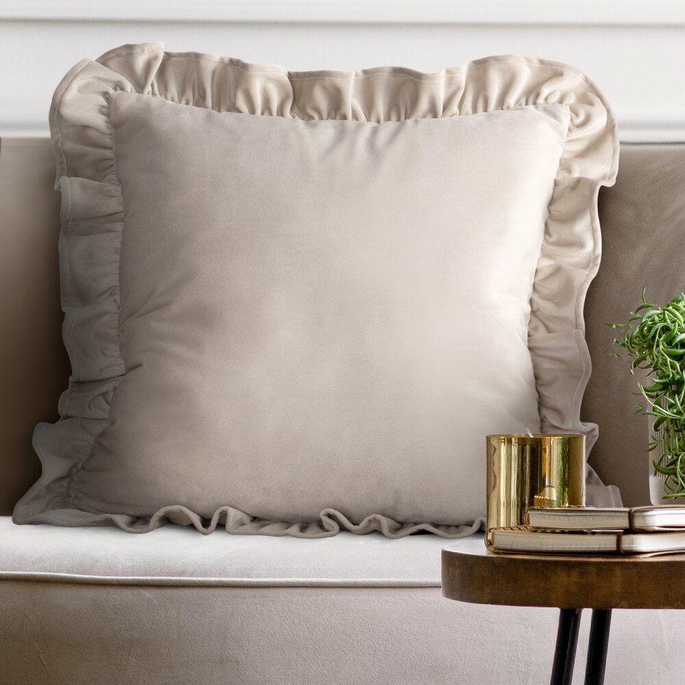 Zamatová obliečka na vankúš BRENDA s volánom bežová
