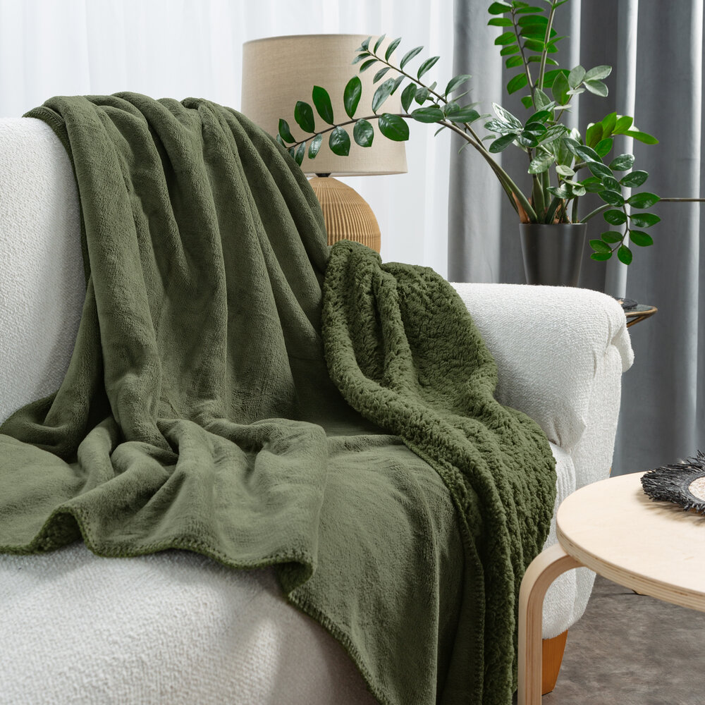 Deka ovečková TEDI 170x210 cm z jemného buclé a jemného fleecu, olivová