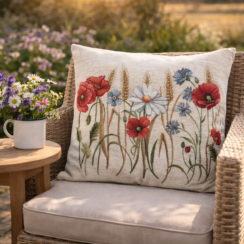 Gobelínová obliečka na vankúš EDEN 1306 vlčie maky a nevädza