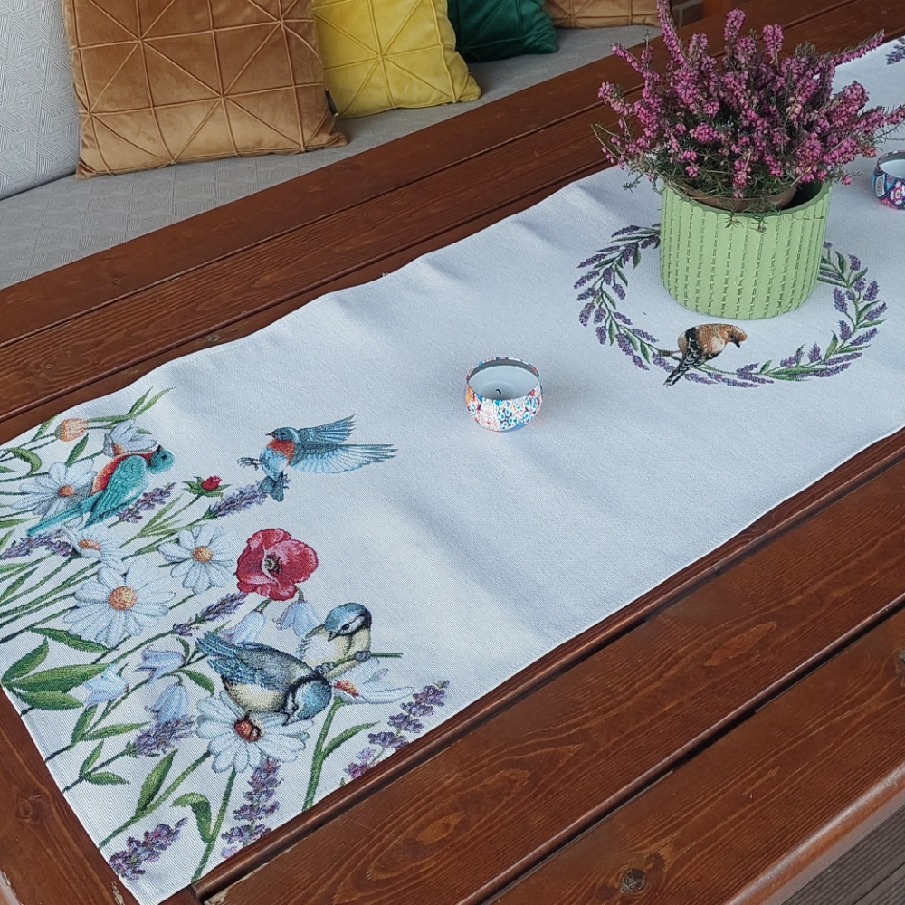 Gobelínové obrusy, pevný kvalitný materiál, stálofarebný aj v exteriéry. Farby dlho pretrvávajú aj posôbením priameho slnečného žiarenia.