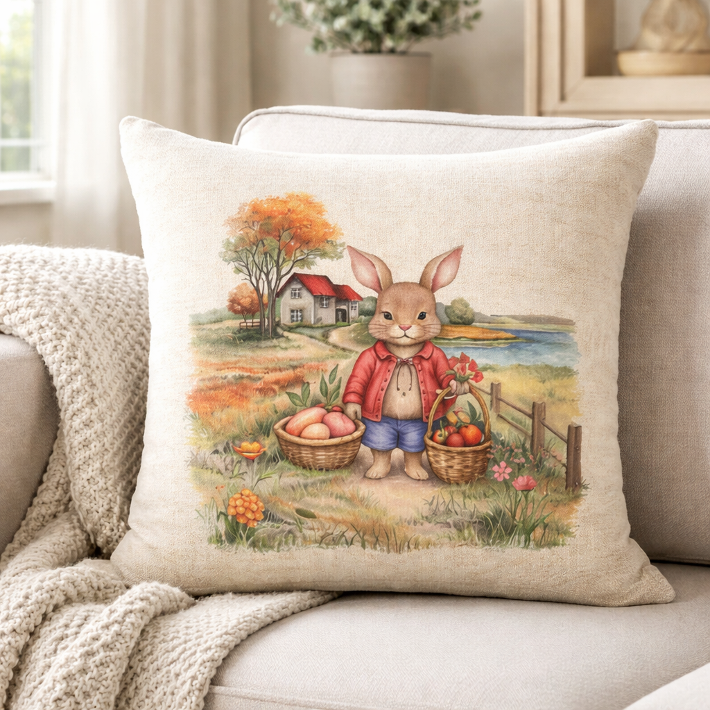 Zamatová obliečka na vankúš s jarným motívom Králiček Peter 13V