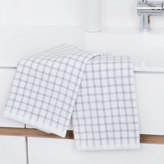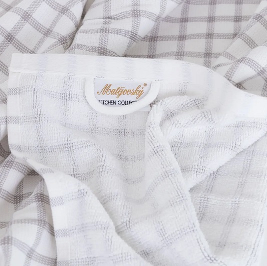 Kuchynské utierky Kocky vynikajú svojim praktickým prevedením a nadčasovým dizajnom. Vrchná strana utierky je hladká s jednoduchým kockovaným vzorom, spodnú stranu tvorí hebké biele froté s presvitajúcim motívom kociek z vrchnej strany. Vďaka optimálnej gramáži utierky výborne sajú a veľmi rýchlo schnú. Utierky majú všetky štyri strany lemované a sú opatrené praktickým pútkom.
