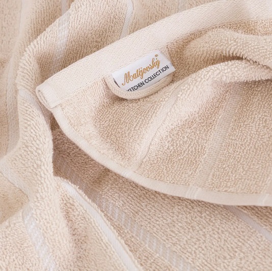 Kuchynské utierky Mona zdobia na vrchnej strane slučkového froté elegantné biele prúžky, na spodnej strane utierky sú tieto prúžky vo farbe froté. Utierky sú navrhnuté tak, aby mali ideálne absorpčné vlastnosti a súčasne rýchlo schli. Utierky sú zo všetkých štyroch strán lemované a sú opatrené praktickým pútkom.