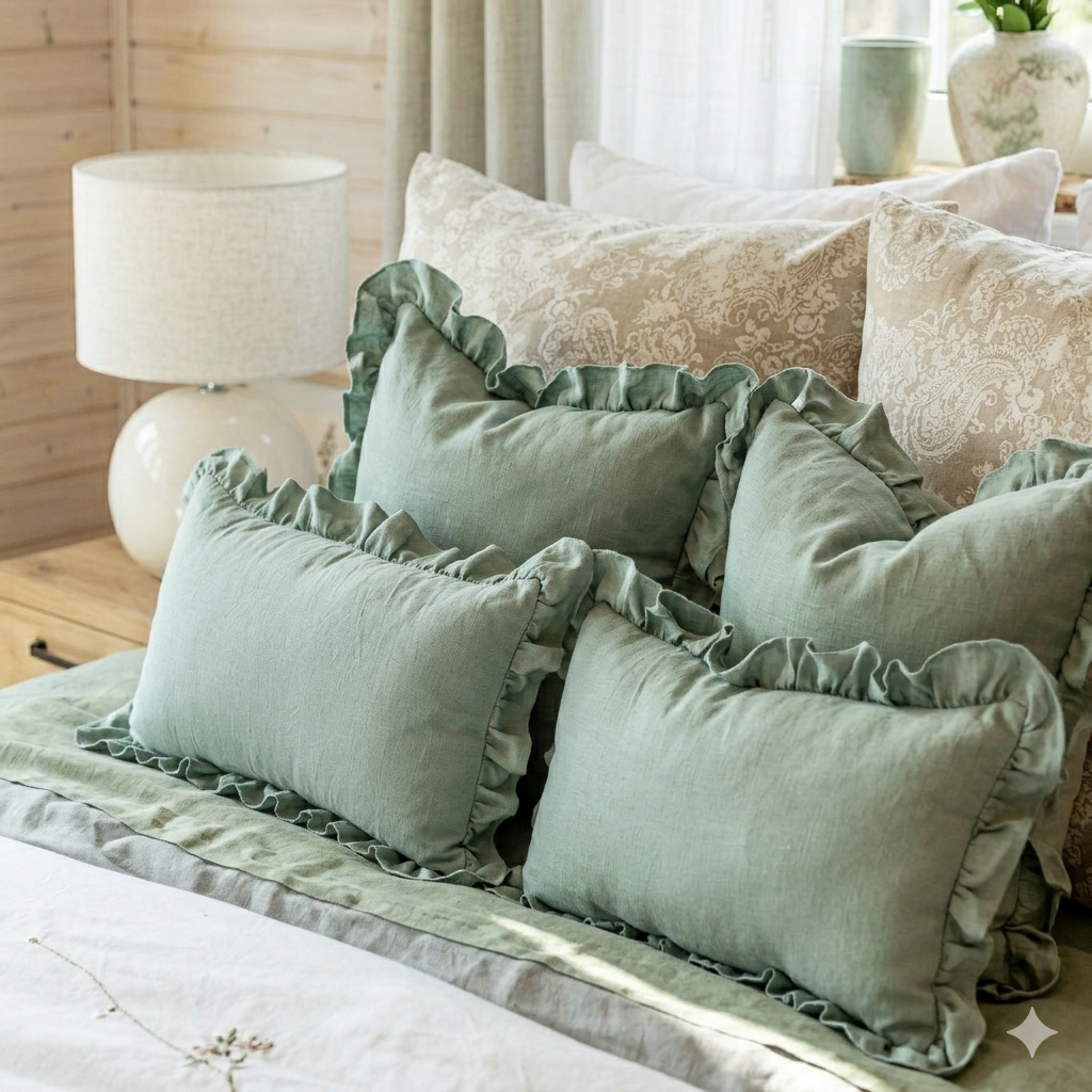 Obliečka na vankúš 30x50 cm Falbanka šalviová