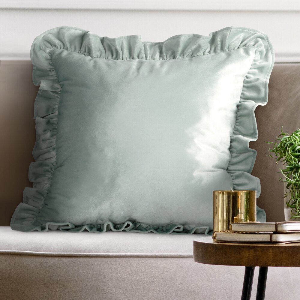 Zamatová obliečka na vankúš BRENDA s volánom šalviová