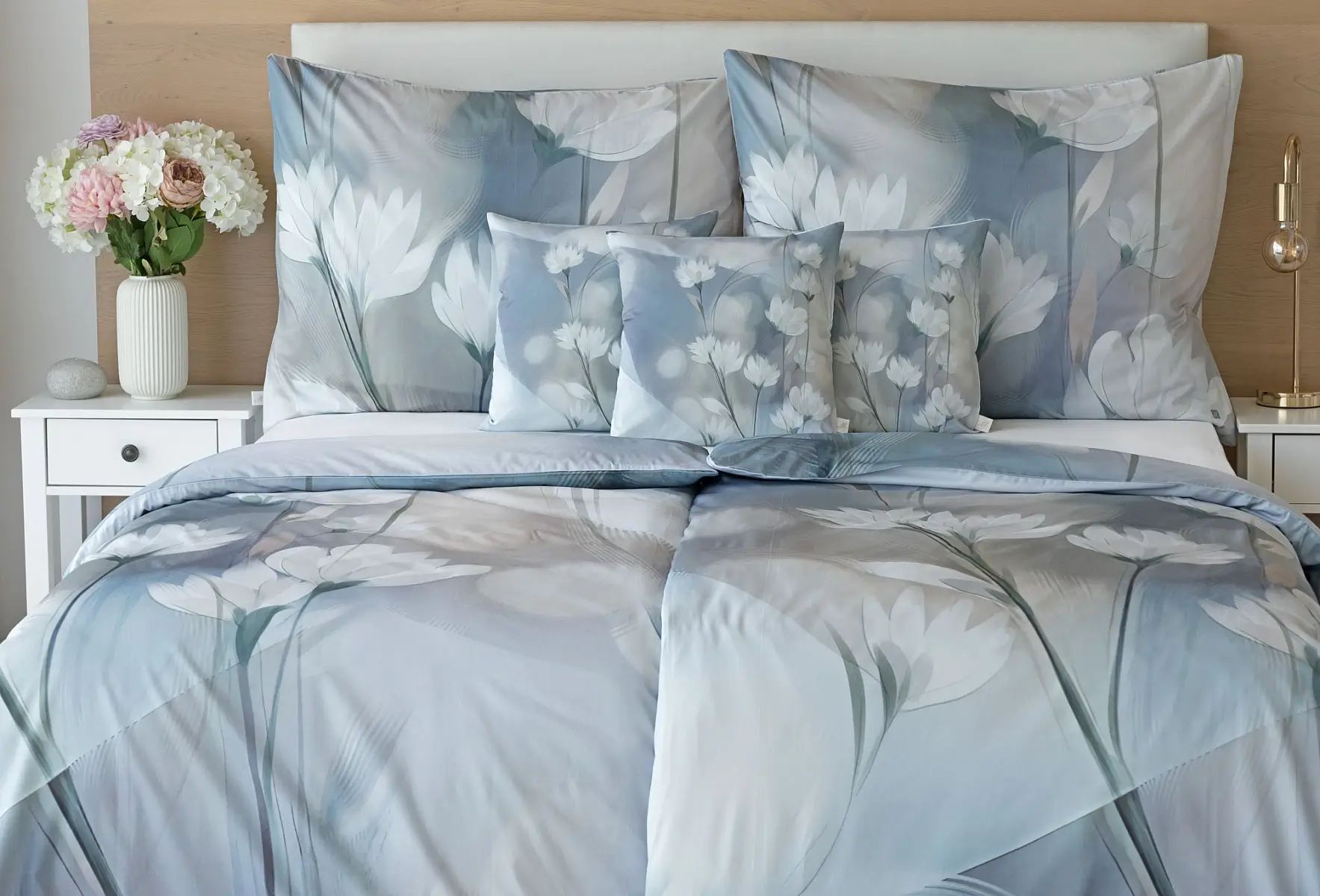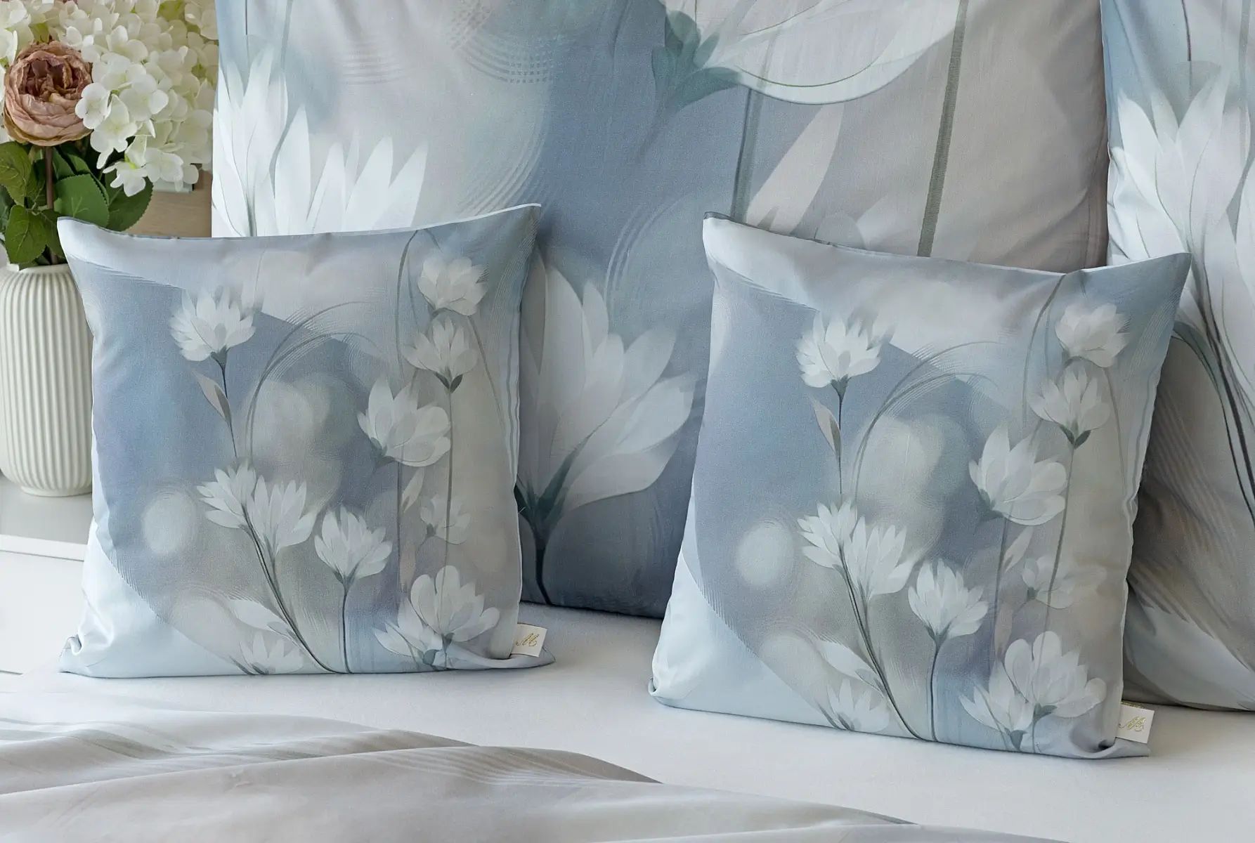 Vzore Eloise dominuje atraktívny florálny motív v palete modrých a tlmených púdrových tónov. Obliečka na vankúš aj na prikrývku je z oboch strán rovnaká, vrchnú stranu obliečky na vankúš zdobí malé logo "M" v pravom dolnom rohu. Obliečky sú opatrené komfortným zipsovým uzáverom .