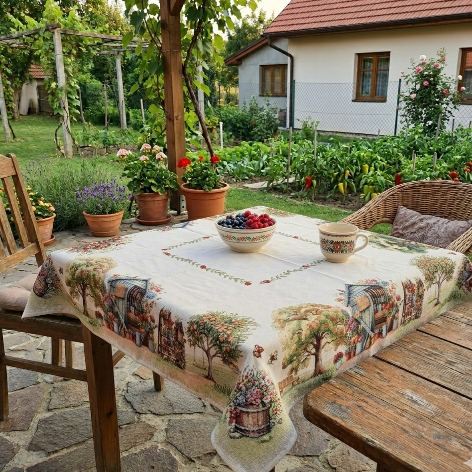 Gobelínový žinilkový obrus - 1425 záhradný domček