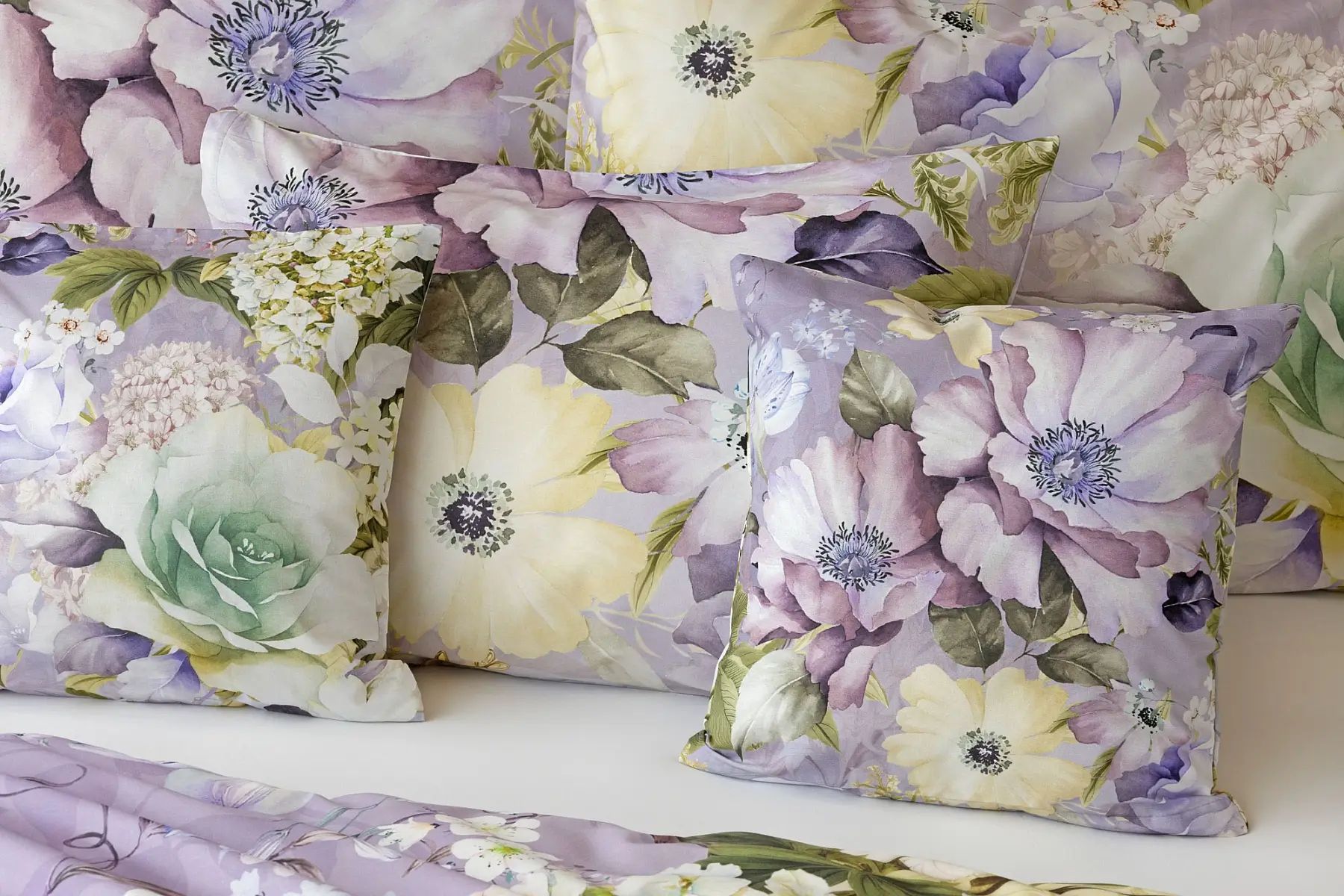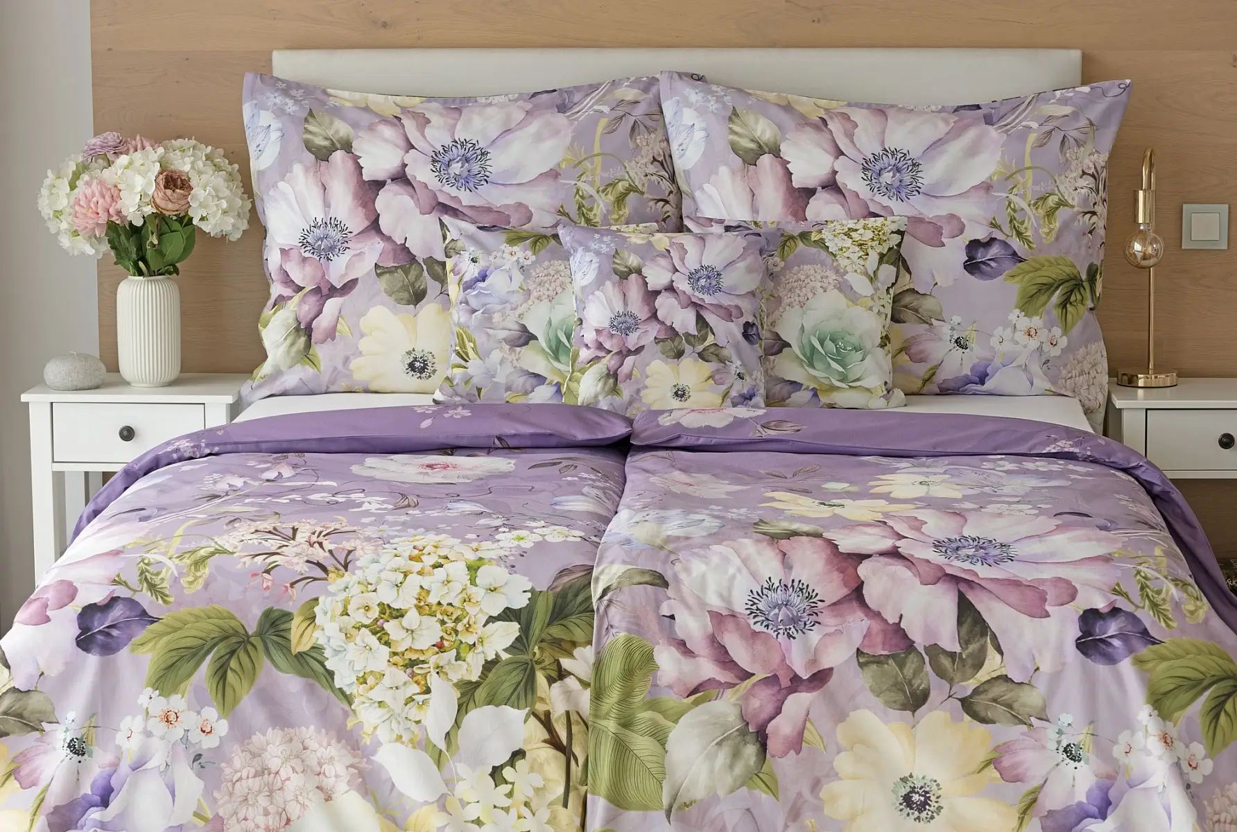 Popis vzoru: S bavlnenými obliečkami Calimera vaša spálňa zažiari. Tento jedinečný kvetinový motív prináša celú náruč atraktívnych kvetov, ktoré sú v dokonalej harmónii s okúzľujúcimi tónmi podkladovej fialovej farby. Vďaka najmodernejšej digitálnej tlači si vychutnáte každučký detail tohto florálneho vzoru.