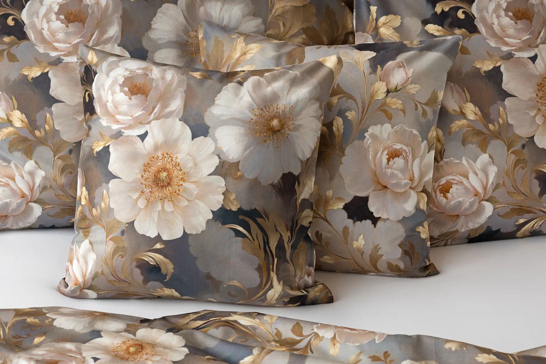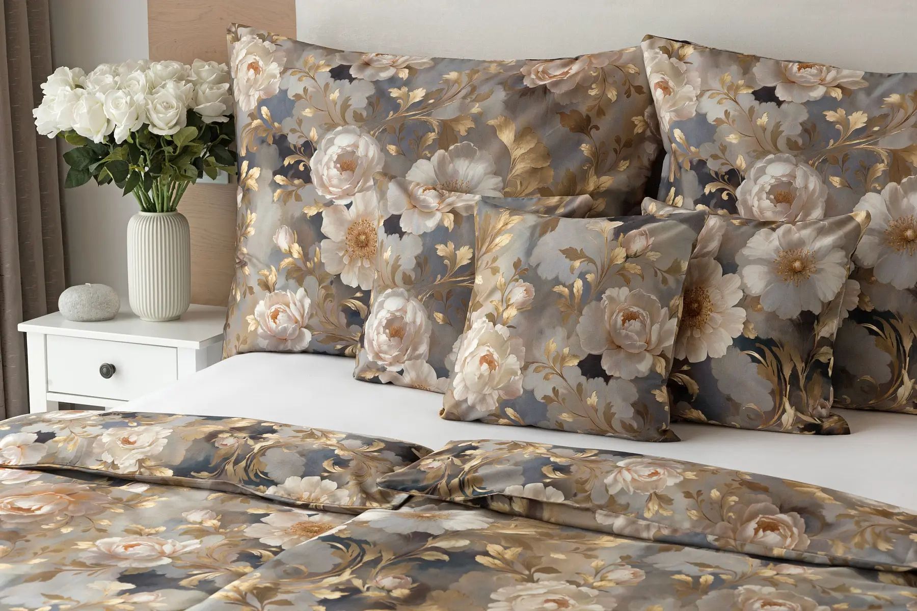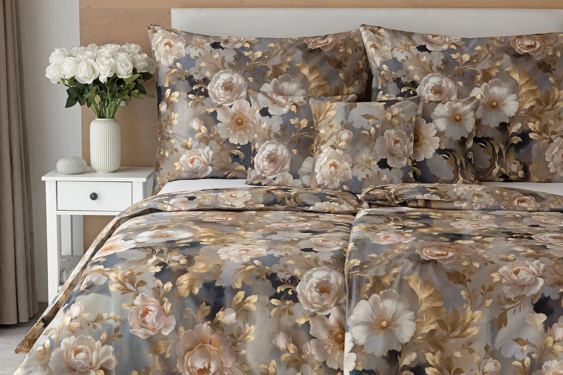 Popis vzoru: Saténové obliečky Ivelle dodajú vašej spálni noblesný a harmonický charakter s jemným nádychom luxusu. Bohatá paleta zlatých odtieňov v elegantnom kvetinovom motíve vytvára príjemnú, upokojujúcu atmosféru a mení priestor na miesto dokonalého oddychu. Vzor je spracovaný s mimoriadnou presnosťou pomocou modernej digitálnej tlače, vďaka čomu vyniknú aj tie najjemnejšie detaily. Kvalitný bavlnený satén s prirodzeným leskom zvýrazňuje celkový dojem a podčiarkuje výnimočnosť tohto dizajnu.