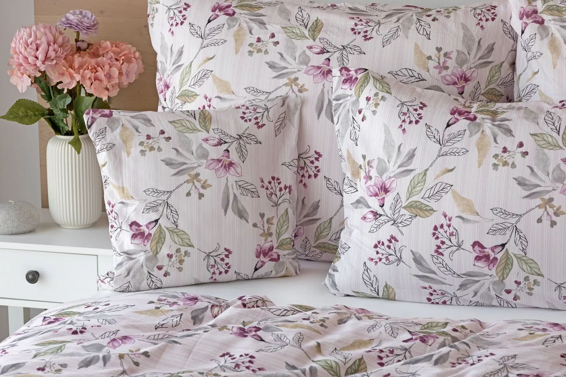 VZOR: Pre novú kolekciu posteľnej bielizne Mako jersey sme starostlivo vyberali motívy, ktoré tomuto pružnému materiálu pristanú. Vzor Claudia s motívom drobných ružových kvietkov vnesie do vašej spálne hrejivý nádych jari.