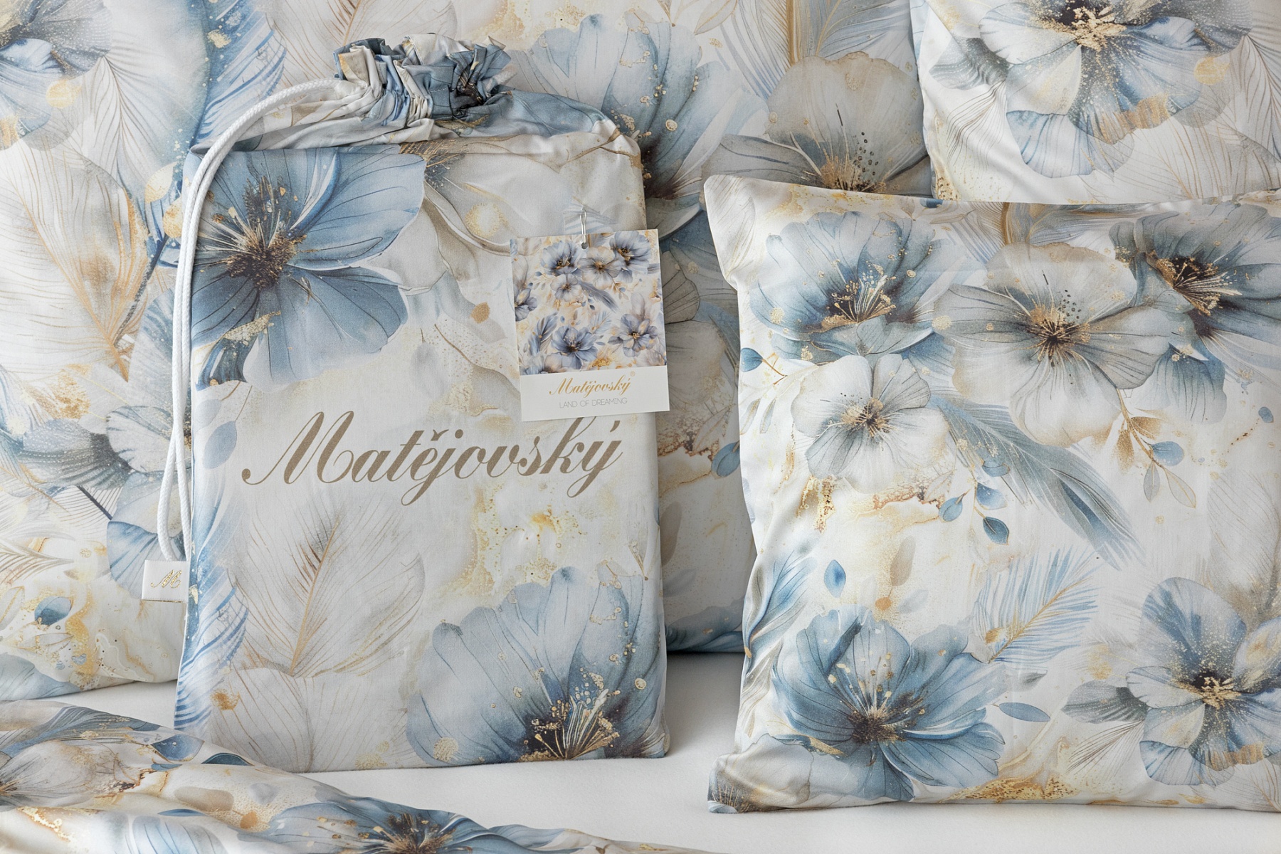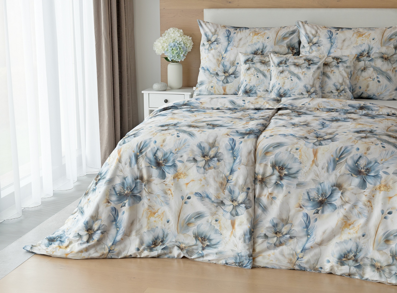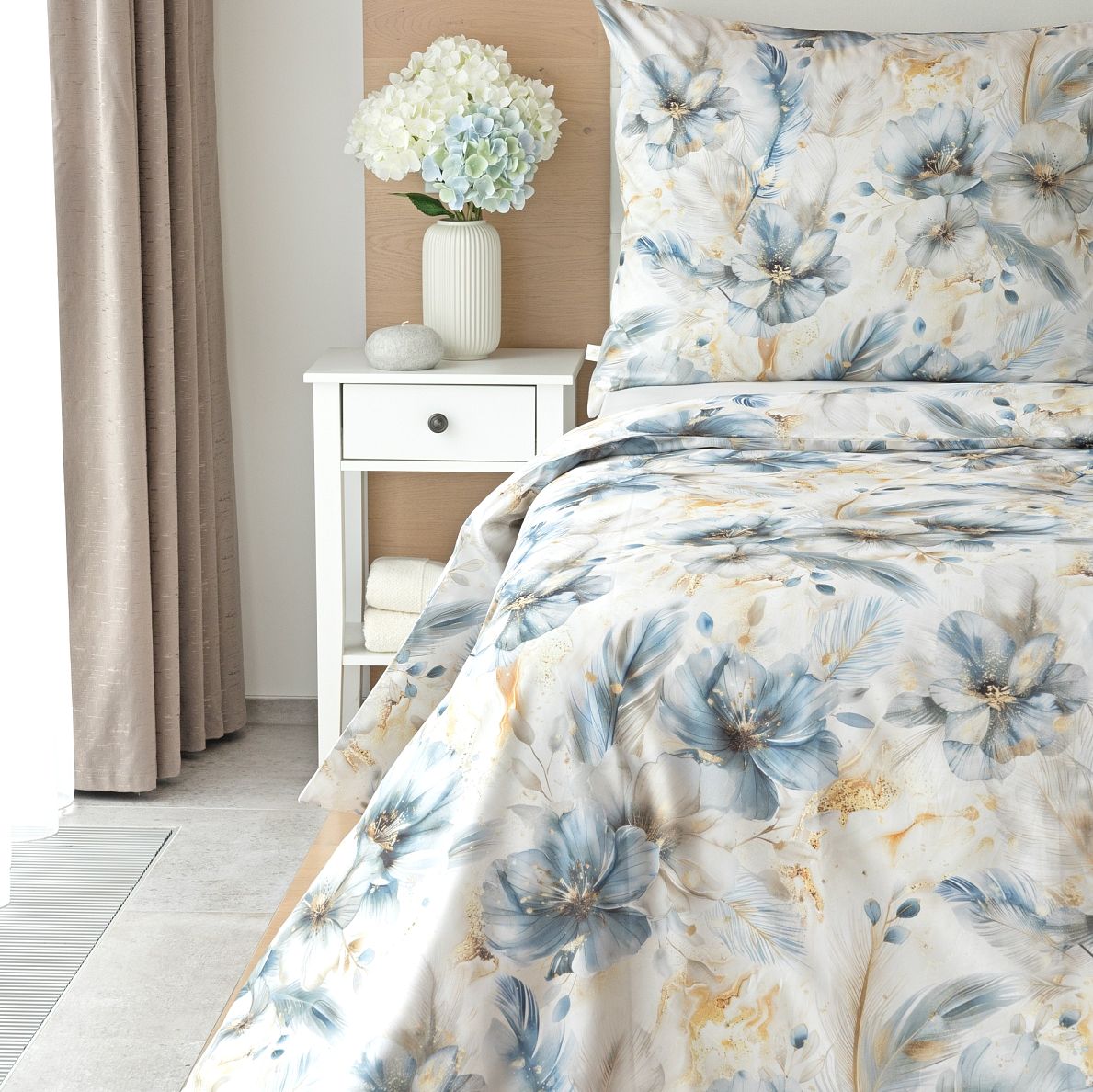 Vzor Lowell zdobí atraktívny kvetinový motív v palete modrých, šedých a zlatistých tónov na krémovo bielom podklade. Obliečka na vankúš aj na prikrývku je z oboch strán rovnaká, obliečky sú opatrené komfortným zipsovým uzáverom.