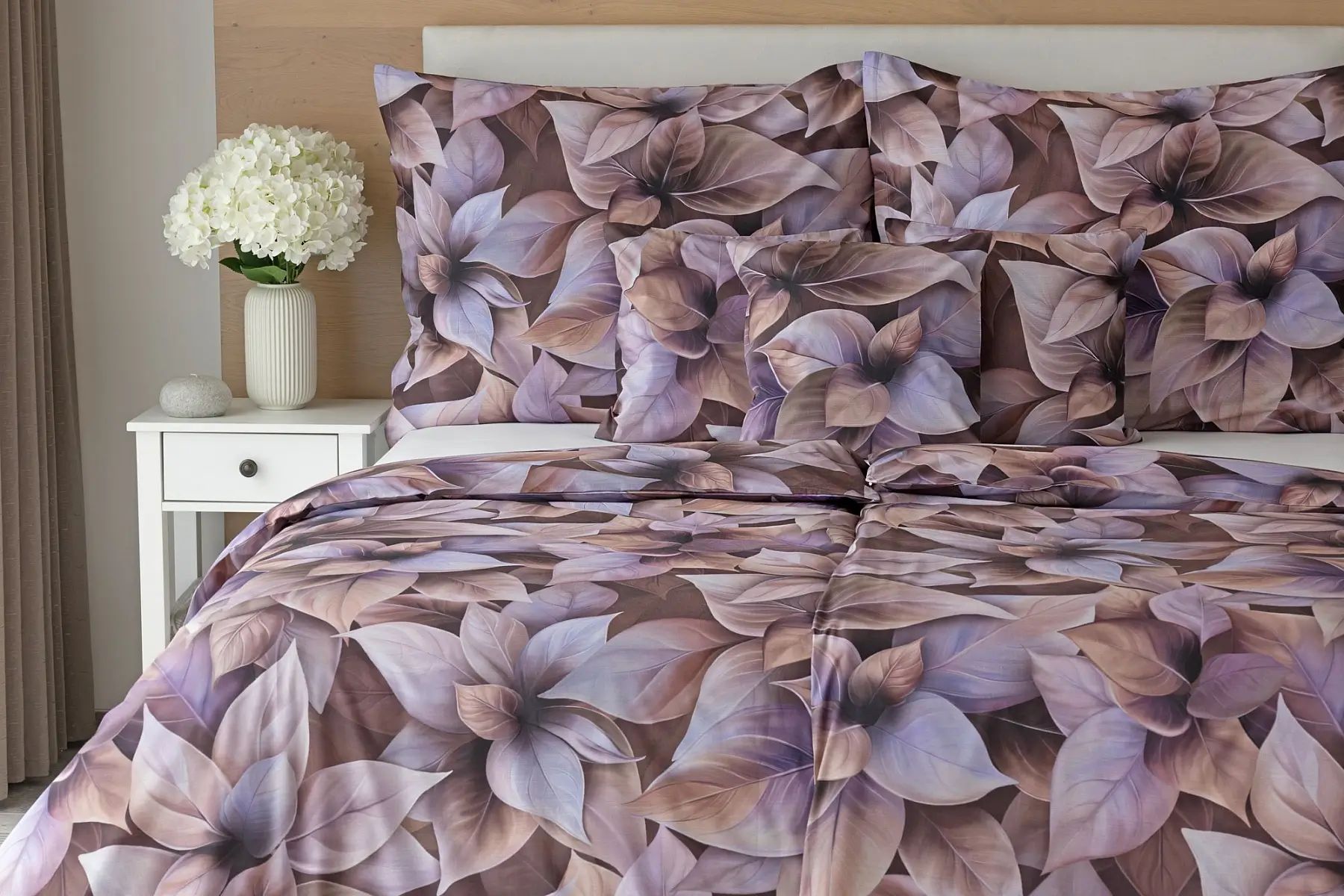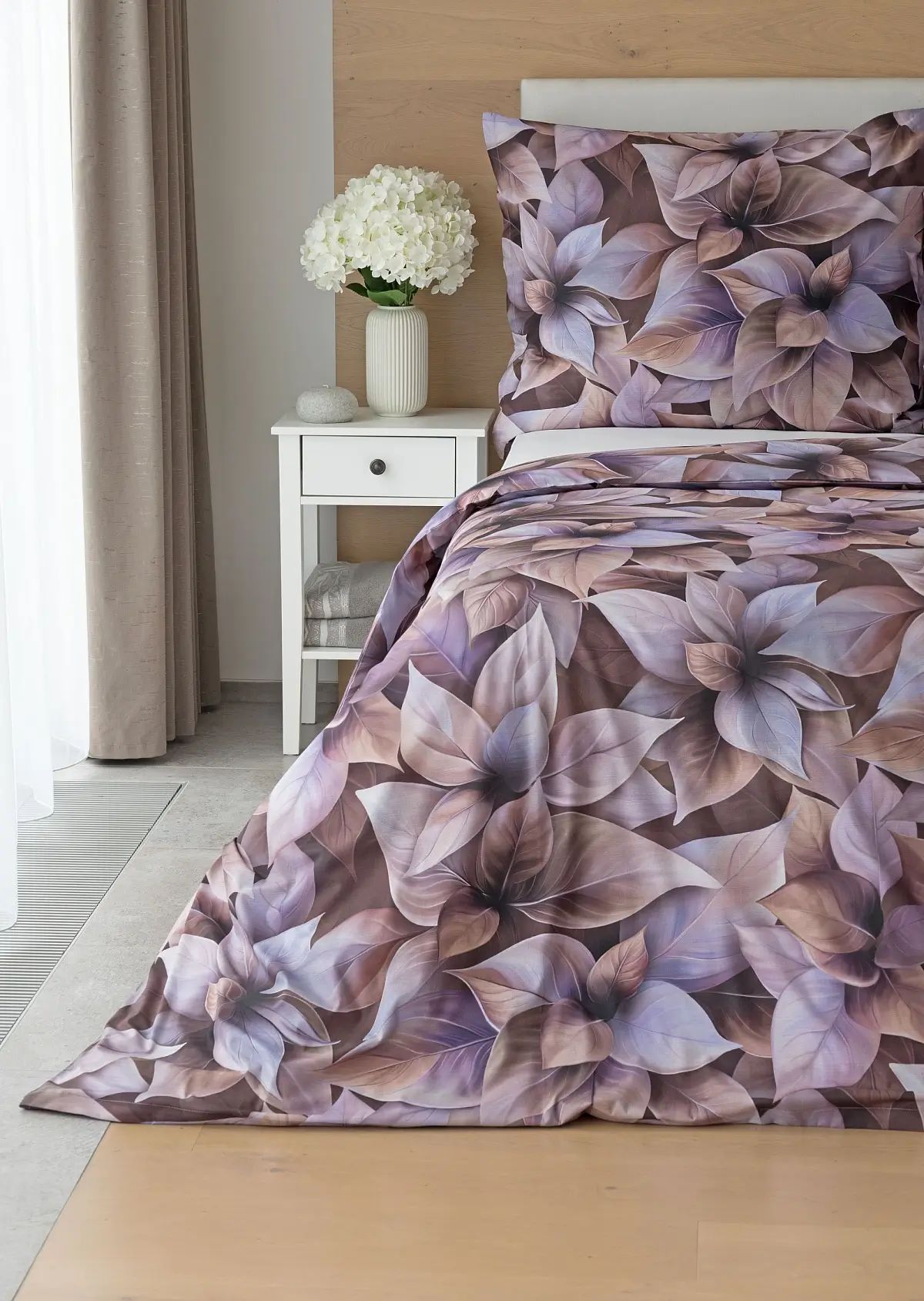 Popis vzoru: Vyšperkujte si spálňu s bavlnenými obliečkami Ines. Netradičný kvetinový vzor zachytáva motív vianočnej ruže v trendy odtieňoch púdrovej, fialovej a hnedej. Originálny motív a dobre zvolená kombinácia farieb prináša jedinečný vzor, ktorý môžete s radosťou povliecť v každej ročnej dobe.