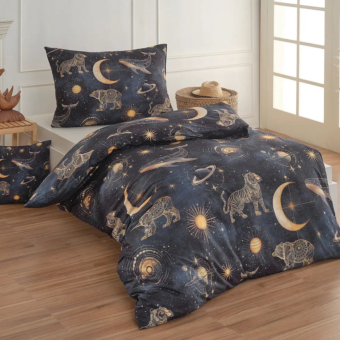 Starostlivosť: pred prvým použitím posteľné návliečky dôkladne vyperte na plný cyklus prania (nie skrátenie pranie na 30min.), posteľné návliečky perte na 40°C oddelene (ani s posteľnou plachtou) pracím práškom na farebné prádlo. Perte rubom (farebnou stranou dovnútra).Šetrne odstreďujte. Po vypraní návliečky ihneď vyberte z práčky a zaveste. Posteľné návliečky môžete sušiť na intenzitu "vlhké k žehleniu". Posteľné návliečky žehlite na bavlnený program, nemandlovať. Je dôležite posteľné obliečky dokladne 1.krát oprať, odstránia sa zvyškové farby, pri  krátkych praniach na nižších teplotách sa môžu zvyškové farby zaprať do obliečok. Ak to spozorujete, operte obliečky ešte raz a farba sa odstráni praním.