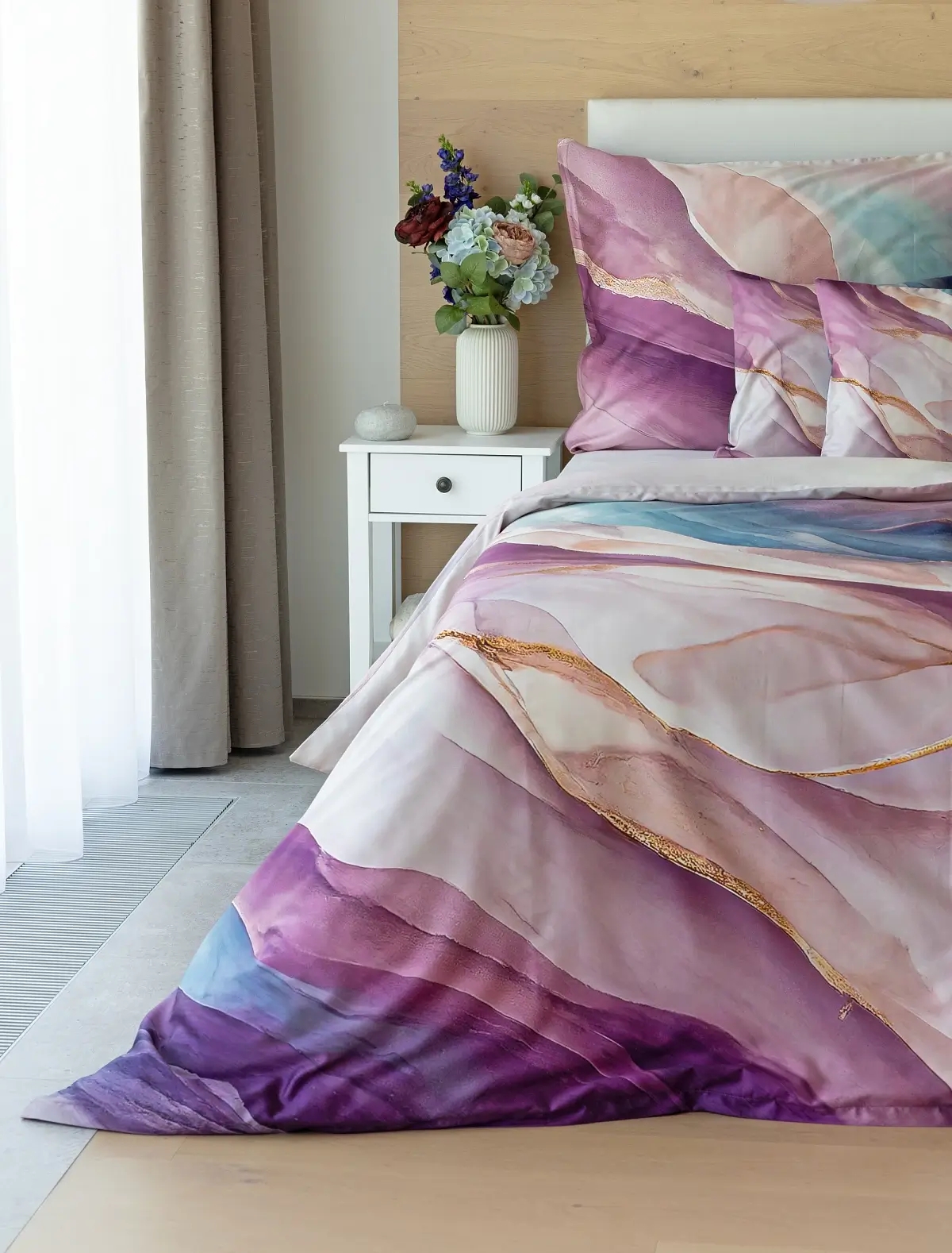 Popis vzoru: Saténové obliečky Dionna si vás získajú na prvý pohľad. Vychutnajte si dokonalé súznenie púdrových, ružových, fialových a modrých tónov v tomto extravagantnom vzore. O váš pohodlný spánok sa postará 100% prvotriedna bavlna v hebkej atlasovej väzbe. Obliečky sú opatrené komfortným zipsovým uzáverom.