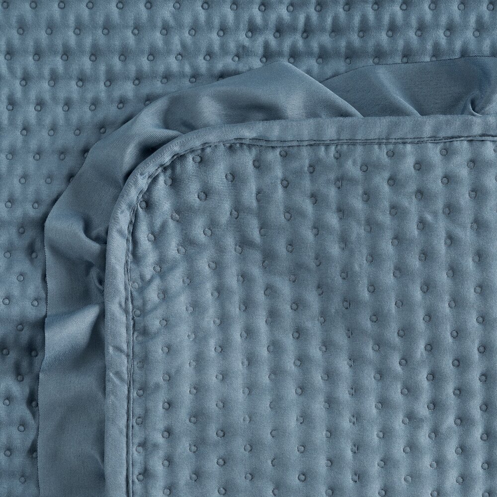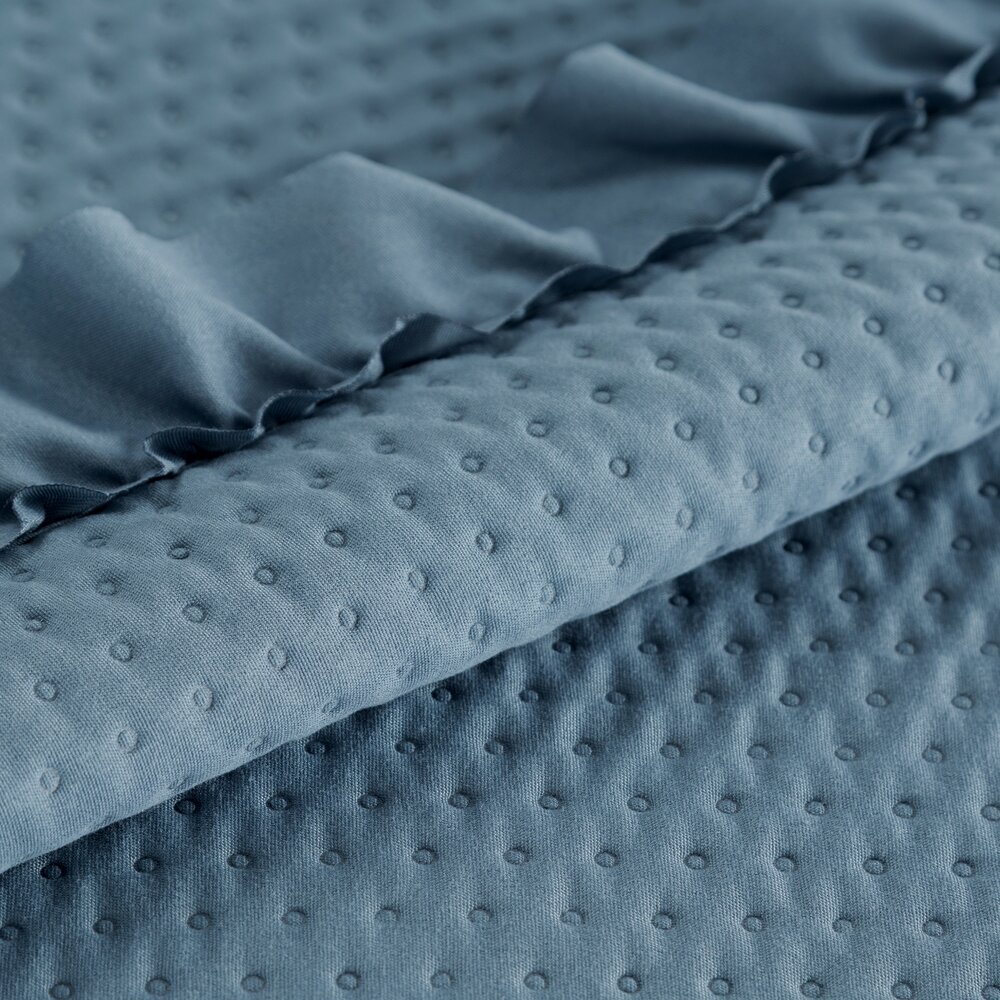 Prehoz na posteľ FALBANKA 200x220 cm modrý s volánovým lemom