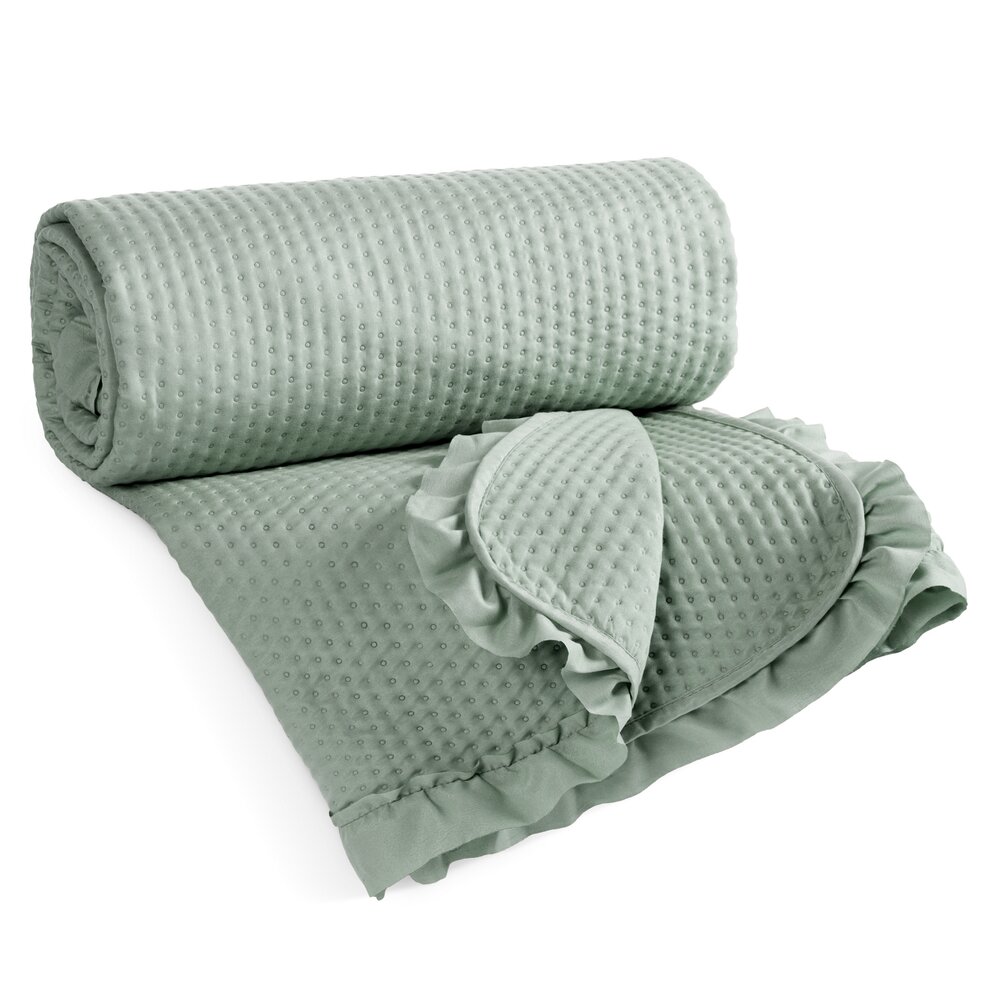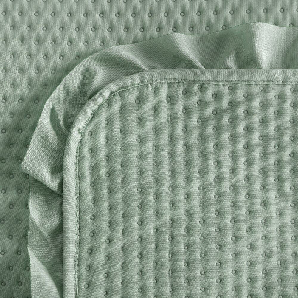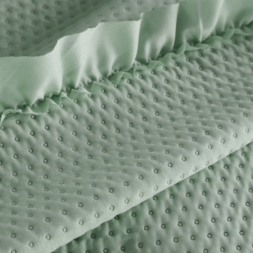 Prehoz na posteľ FALBANKA 200x220 cm šalviový s volánovým lemom
