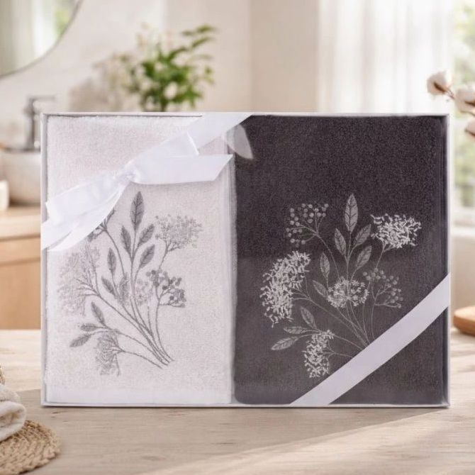 Set má nadýchaný vzhľad a je veľmi hebký na dotyk s vysokou savosťou. Tematická výšivka na spodnej časti výrobku dotvára elegantný vzhľad uteráku i osušky. Je zabalený v efektných krabičkách.