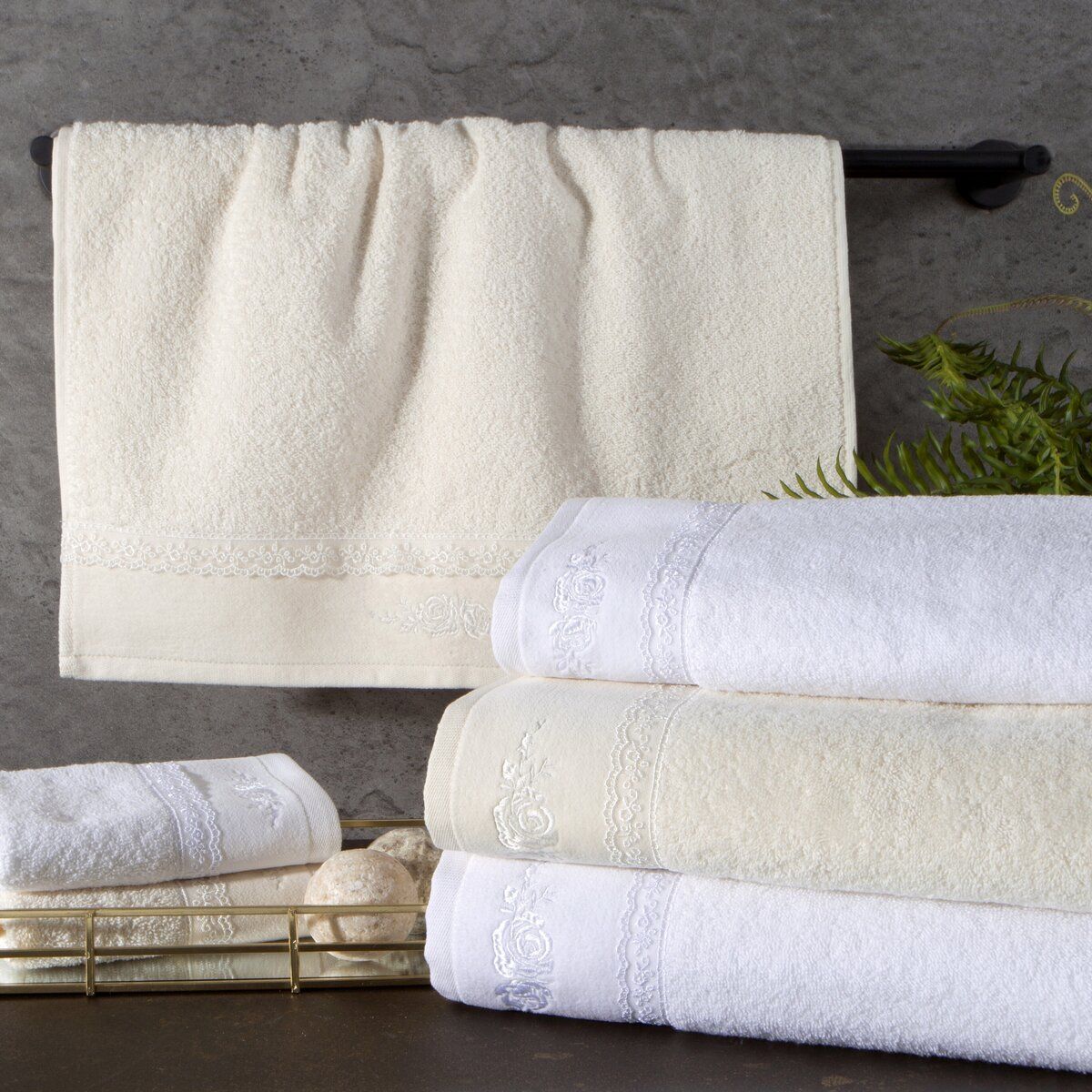 Bavlnená osuška SISI 70x140 cm s výšivkou a krajkou, krémový